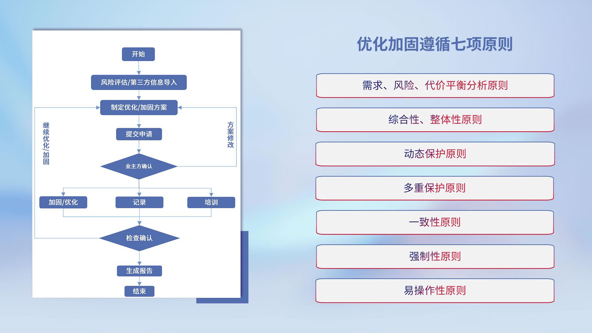 最大程度利用现有资产,,,,对评估发现的问题进行封堵与整改,,,防止漏洞被利用,,,提升整体网络安全性,,,,为客户带来高标准的优化加固服务。。。。